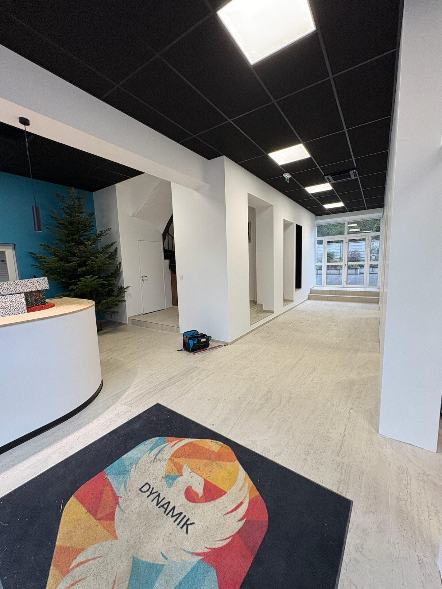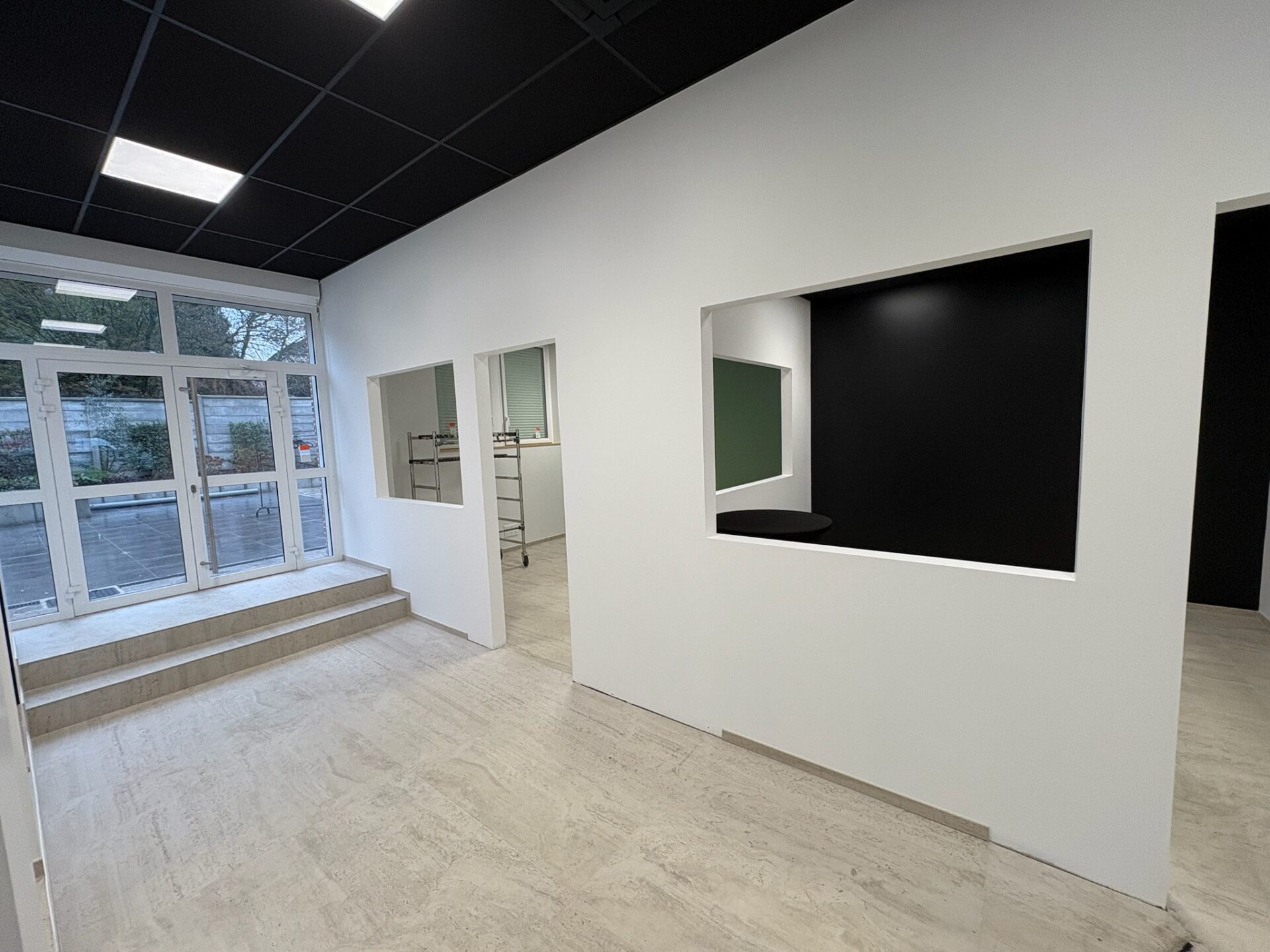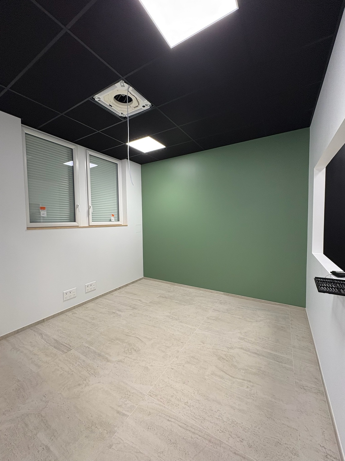 • Peinture : Mise en œuvre de peintures acryliques en deux couches sur murs et plafonds, conformément aux teintes validées par le maître d’ouvrage. Les produits utilisés sont adaptés à un usage tertiaire, garantissant résistance et facilité d’entretien.