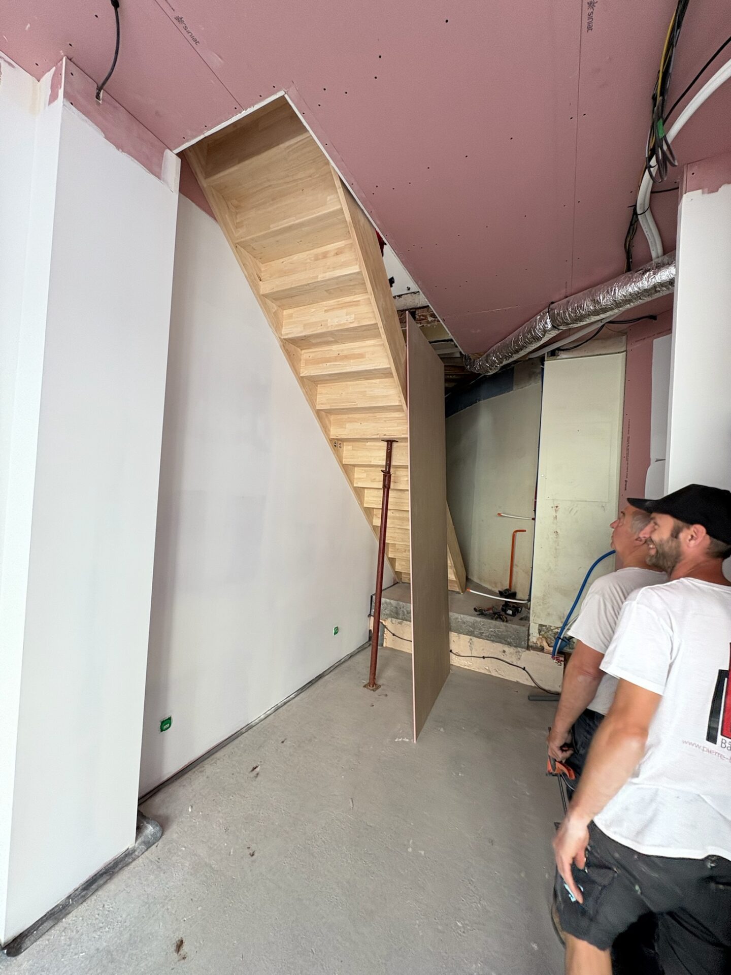 • Plâtrerie et isolation : Réalisation de cloisons et doublages en plaques de plâtre sur ossature métallique, avec incorporation d’un isolant thermique et acoustique pour améliorer le confort intérieur.